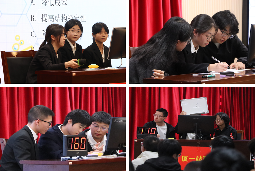 本届竞赛面向全校本科生,设初赛、决赛两大阶段。初赛于11月22日举办,共有来自18个学院的219人参赛。初赛线下笔试的激烈角逐后,由材料学院、航空航天学院、化学化工学院等9个学院的24名同学组成的8支队伍成功进入决赛,其中专业与非专业队各4支。竞赛涵盖了材料科学的多个领域,涉及了包括无机、高分子、生物在内的诸多学科材料类别,深入挖掘了参赛者的材料知识储备和应用能力,尽显厦大学子探索材料领域的多元风采。