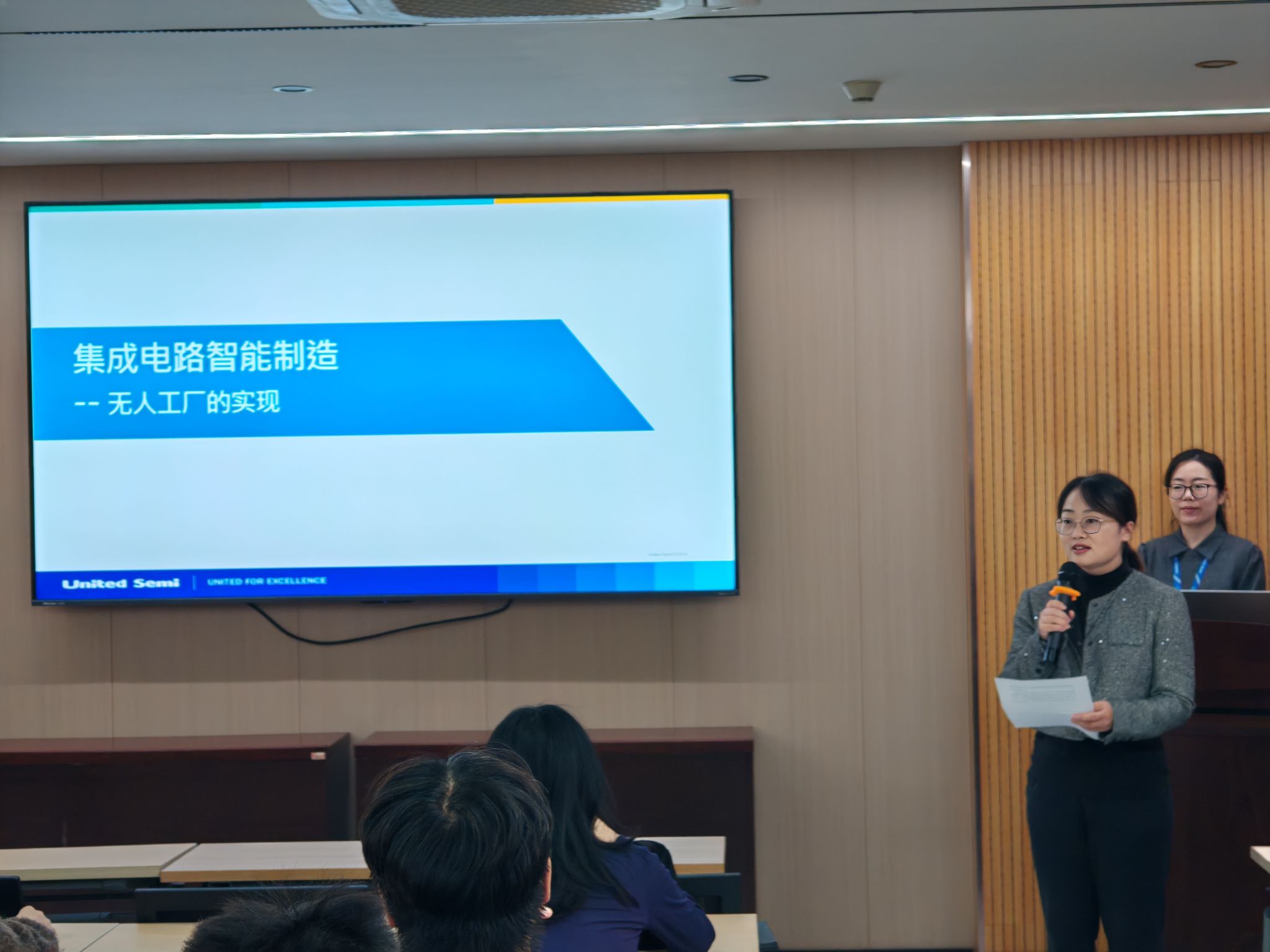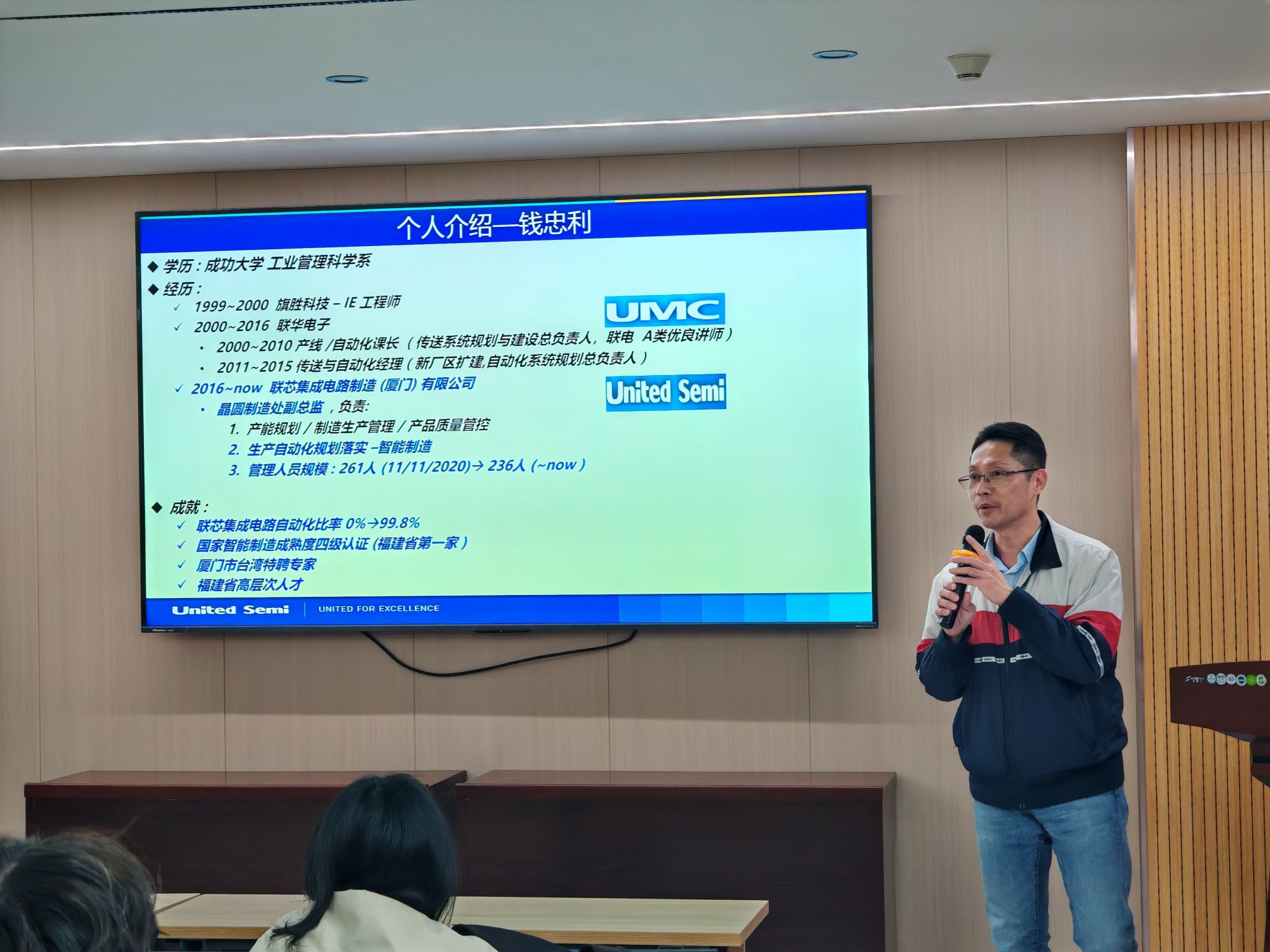 为引领材料学子把握前沿产业脉搏,赢取未来职业机遇,12月18日下午,材料学院特邀联芯集成电路制造(厦门)有限公司晶圆制造处副总监钱忠利先生,给同学们带来《集成电路智能制造-无人工厂的实现》先进技术讲座的分享,学院团委副书记蔡胜男主持。