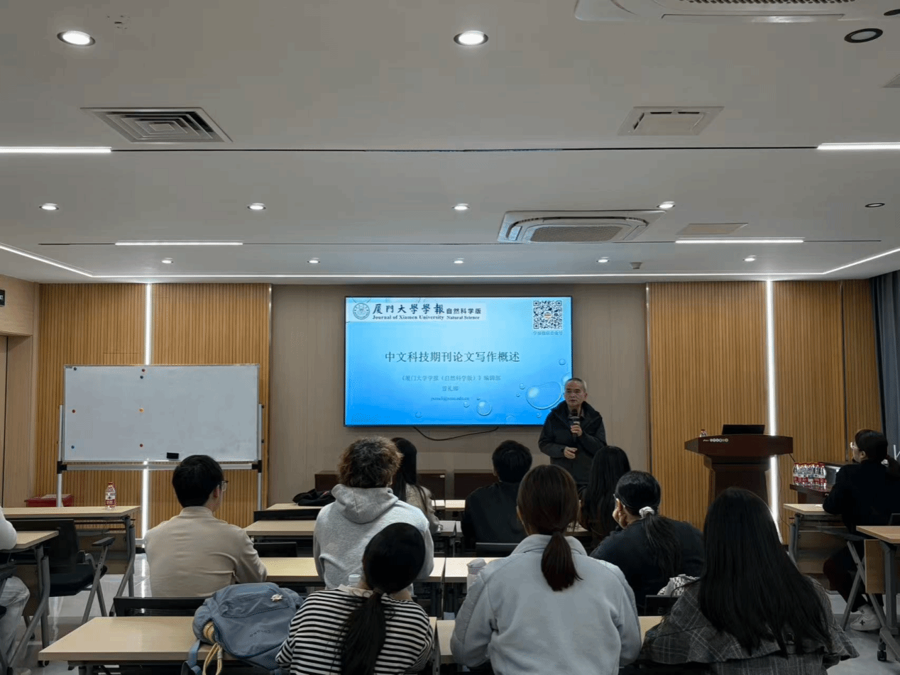 讲座伊始,邱仲潘副主任对《世界杯开云平台学报(自然科学版)》编辑部长期坚持走进学院、面向学生开展学术写作指导的优良传统作出介绍,并指出论文写作能力对科研训练和学术发展具有基础性意义。随后,曾礼娜编辑结合多年期刊编辑与稿件审理经验,从编辑视角系统讲解了中文科技论文写作中的关键问题。